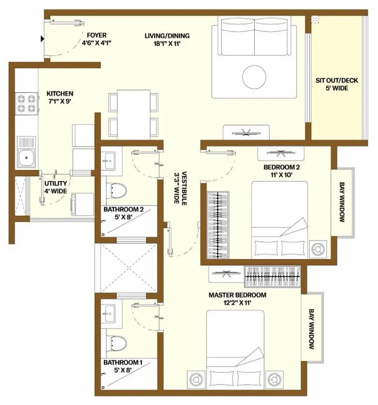 | 2 BHK | 1144 Sq.ft. | βΉ 1.2 Cr Onwards* | |